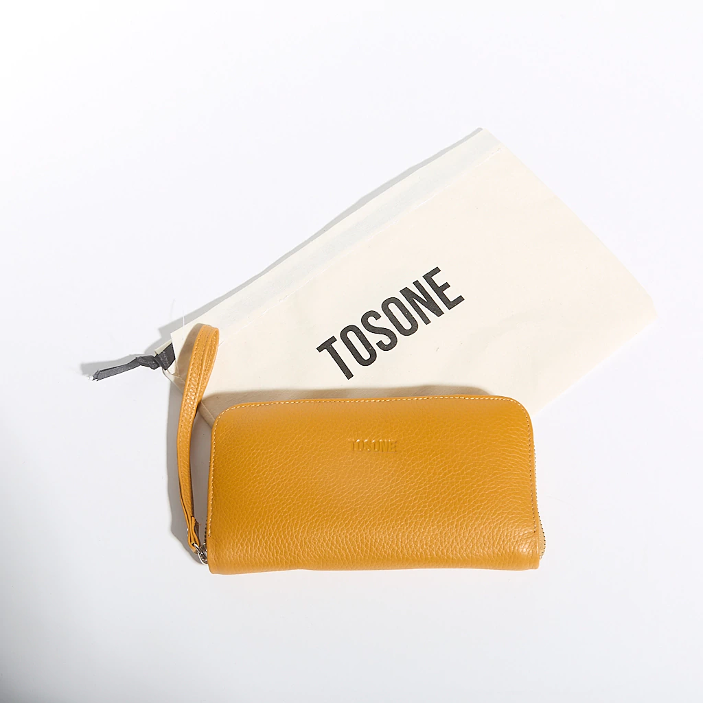 Billetera en Cuero Flotter Mostaza ,con capacidad de colocar hasta 12 tarjetas a la vez . Contiene ademas un bolsillo con cierre dentro del compartimiento de billeteras . forreria en tono negro . Grabado en centro en parte delantera .Manija de agarre para una mejor practicidad como opción de uso . Acompañada ademas de una envoltura de tela con logo de marca .